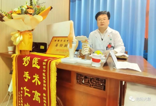 “有位70岁的大爷,刚来我这里时哭啊,他太太比他小12岁,他担心自已站不起来,最后治疗康复开开心心回去了,他是教中文的,也说写文章,我说算了,后面他送了一面大匾过来了。”这是姜医生的业绩之一,很令人信服的。