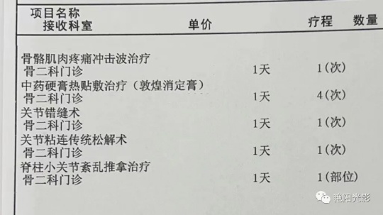 当天做了正骨、冲击波治疗、消定膏热敷、飞天爬墙。